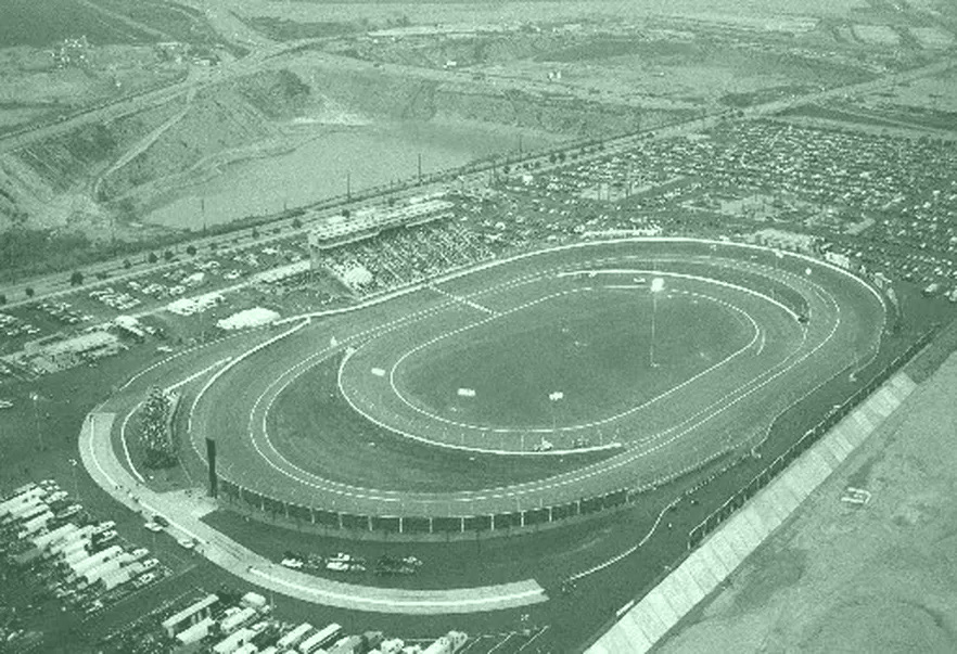 After two short-lived drag strips off Littlejohn Street and Rivergrade Road, the San Gabriel Valley Speedway, also known as Irwindale Raceway, opened in 1970 at the intersection of Rivergrade Road and Commerce Drive in Irwindale, California. This marked the beginning of a longstanding motorsport tradition in the region. The speedway operated until 1977, establishing Irwindale as a hub for motorsports enthusiasts during that era.